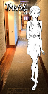 Here's Tamarita again. She's wearing a simple cotton gown, belted at the waist. The skirt comes to just above her ankles to make moving about easier. The sleeves are three-quarters length for comfort in the summer heat. A collared tunic acts to protect her clothing.